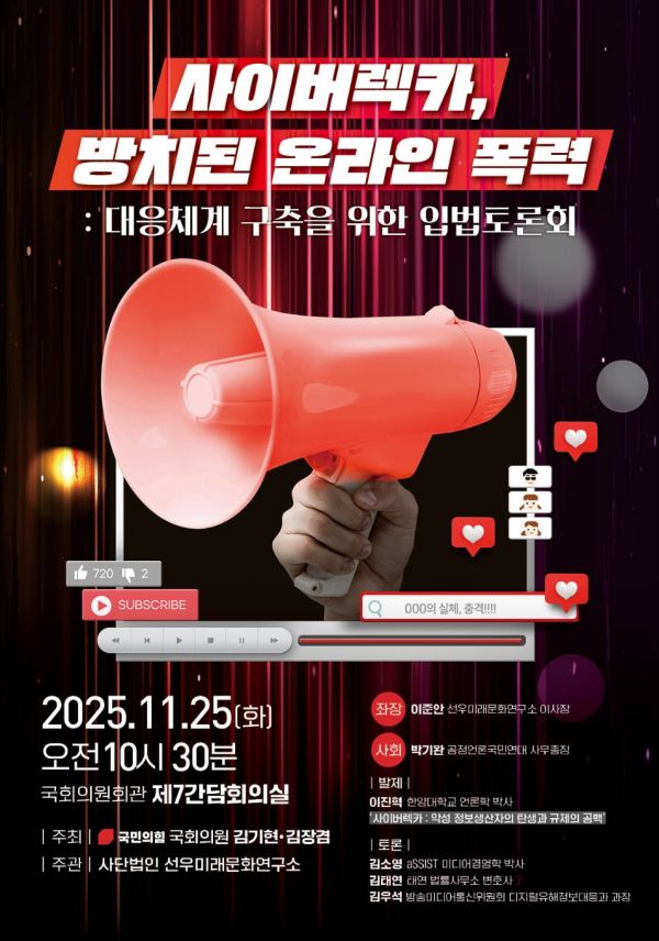 - 사이버렉카, 방치된 온라인 폭력 대응체계 구축을 위한 입법토론회 개최 -